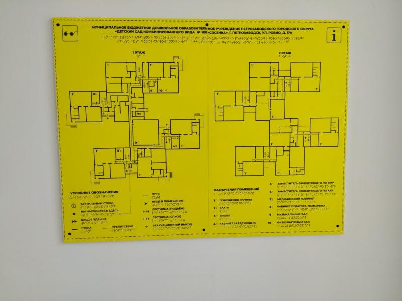 Вход в здание МДОУ оборудован информационной табличкой с названием организации и графиком работы, выполненной рельефно-точечным шрифтом Брайля, пандусами и поручнями, тактильными полосками. Пути движения внутри здания МДОУ оборудованы знаками доступности, поэтажными планами здания, информационными табличкам, выполненными рельефно-точечным шрифтом Брайля, тактильными полосками. В целях обеспечения доступности для инвалидов и лиц с ограниченными возможностями здоровья разработаны: |
